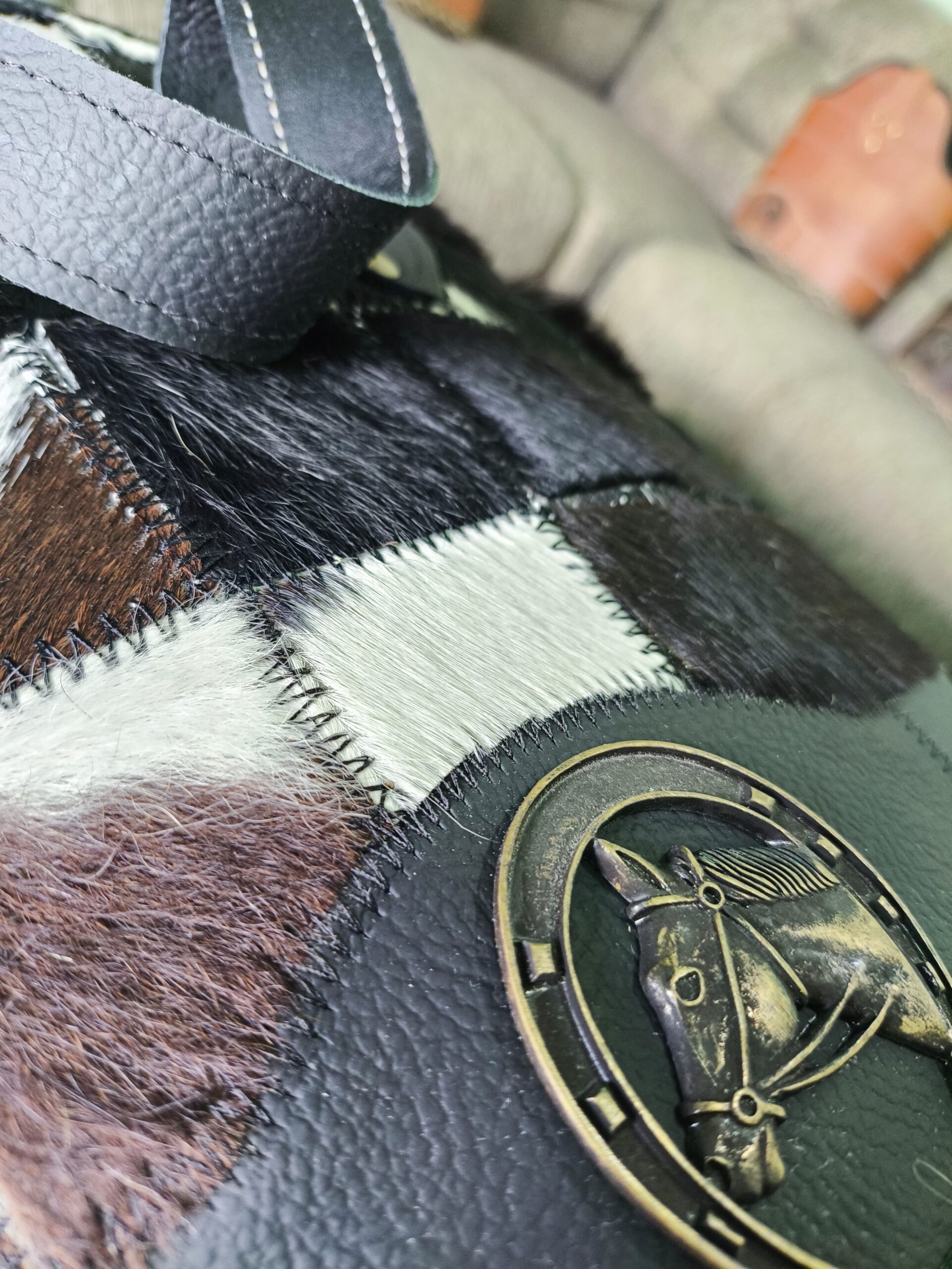 A Mateira de Couro Legítimo com Pelo é a escolha perfeita para quem valoriza qualidade, resistência e autenticidade. Feita artesanalmente, combina couro legítimo com pelo na parte externa e parte inferior em couro sem pelo, garantindo durabilidade e um visual rústico sofisticado. Suas alças reforçadas proporcionam segurança no transporte, enquanto a costura minimalista destaca o acabamento impecável. Com dimensões ideais (29cm x 24cm x 14cm), é funcional e elegante, perfeita para acompanhar você em qualquer ocasião.